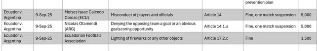 El informe disciplinario señala que la expulsión se produjo por “evitar un gol u oportunidad manifiesta de gol al equipo contrario” durante una jugada sobre Enner Valencia en el primer tiempo, sancionada con tarjeta roja directa por el árbitro Wilmar Roldán y respaldada por el VAR.