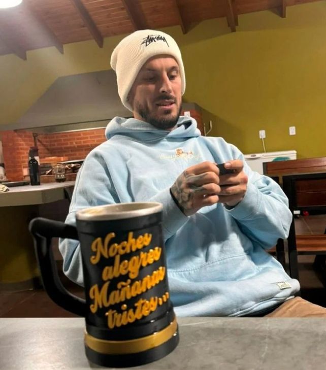 Con esa misma frase, el goleador decidió grabar un vaso con el que fue retratado mientras jugaba a las cartas. La foto, que generó furor y se viralizó en las últimas horas en las redes sociales, había sido compartida por su hermano Lucas algunas semanas atrás, el 27 de octubre, en su cuenta de Instagram.