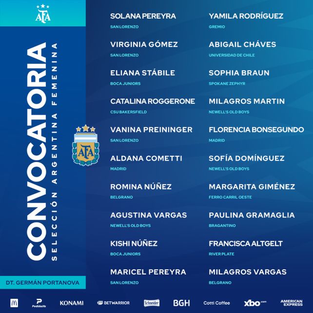 El entrenador de la Selección Argentina Femenina de fútbol, Germán Portanova, elevó la lista de jugadoras que disputarán dos partidos amistosos contra Australia, como parte de la preparación rumbo a la Copa América.
