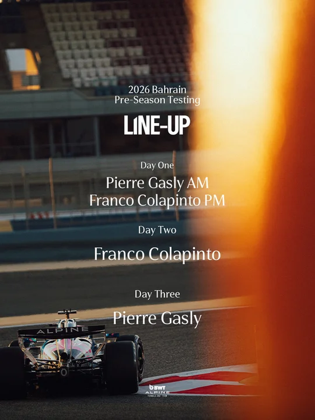 En el caso de Alpine F1 Team, ya se confirmó el cronograma de sus pilotos. El francés Pierre Gasly abrirá la actividad el miércoles por la mañana, mientras que Franco Colapinto tomará el volante en la sesión de la tarde. El argentino completará el jueves íntegramente a bordo del A526, y el viernes será nuevamente el turno del francés.