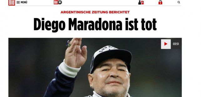 La web Bild de Alemania también fue por el camino de "Murió Diego Maradona". "Fue uno de los grandes futbolistas de todos los tiempos".
