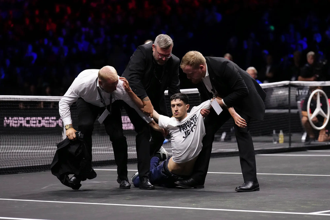 Un activista irrumpió este viernes en el partido que el argentino Diego Schwartzman disputaba ante el griego Stefanos Tsitsipas en el inicio de la Laver Cup y se prendió fuego a un brazo ante la sorpresa y el estupor de los espectadores en el O2 Arena de Londres, Inglaterra.