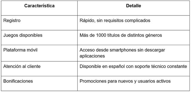 A continuación, se presenta un resumen de las funcionalidades más relevantes que los jugadores suelen tener en cuenta al elegir una plataforma de entretenimiento digital: