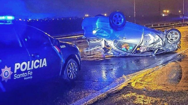 El auto quedó volcado en la Circunvalación