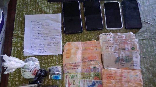 Durante los procedimientos, el personal policial secuestró 14 gramos de cocaína fraccionada para la venta, 29 gramos de marihuana acondicionados en envoltorios de nylon, dos balanzas digitales con vestigios de cocaína, dinero en efectivo, cinco armas de fuego —entre ellas dos escopetas, tres revólveres calibre .22 largo (uno de ellos desarmado) y una pistola marca Bersa—, un total de 67 municiones de distintos calibres (.380, 9 mm, .32 y 12/70), y 11 teléfonos celulares.