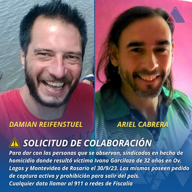 Fiscalía emitió este miércoles un alerta a través del cual se solicita la colaboración de la población para dar con los paraderos de Damián Reifenstuel y Ariel Cabrera, quienes están sindicados como los presuntos autores del crimen de la hincha de Rosario Central Ivana Garcilazo, ocurrido el pasado 30 de septiembre en Ovidio Lagos y Montevideo, en Rosario.