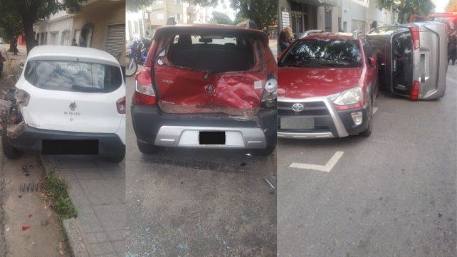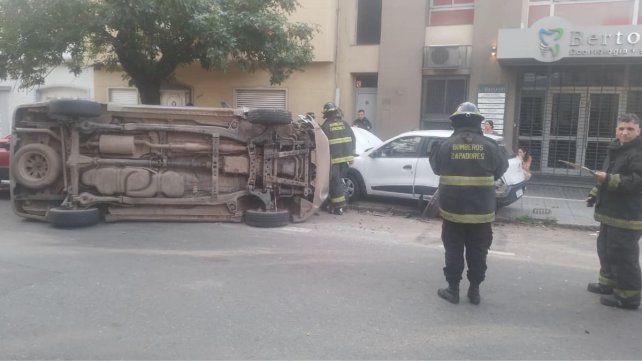 Esta mañana de domingo, antes de las 9, en Francia al 3000 entre Crespo al Sur y Suipacha al norte, un automóvil conducido por un joven chocó a dos que estaban estacionados y volcó. Los vecinos llamaron a la central de emergencias 911.