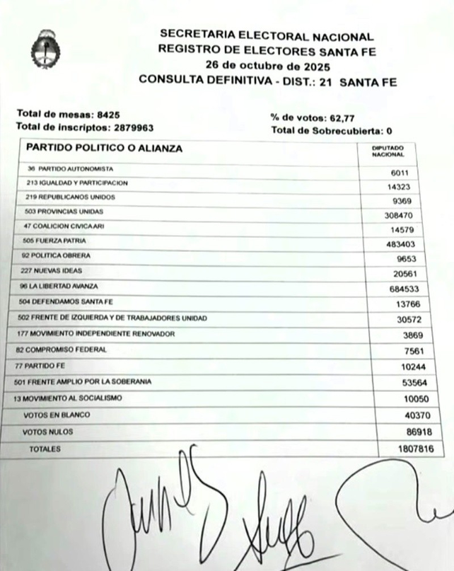 El escrutinio definitivo de las elecciones legislativas nacionales que se celebraron el domingo pasado culminó este jueves a la tarde en Santa Fe, tal como lo había anunciado la Secretaría Electoral. El proceso final de recuento de votos permitió ratificar la distribución de las bancas a diputados nacionales por la provincia.