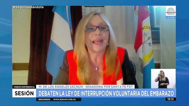 Por su parte la senadora Sacnun, a través de videoconferencia, comenzó refiriéndose a la Constitución Nacional como un "texto que se va recreando", y luego citó al informe del Cepal con datos sobre los abortos clandestinos: "Entre el 2010 y el 2017, en promedio egresaron de hospitales públicos 45.600 personas gestantes por año por abortos incompletos".