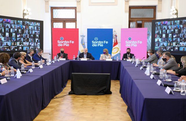 El gobernador Omar Perotti encabezó este miércoles un encuentro junto a intendentes y presidentes comunales donde se abordaron diferentes cuestiones sobre el proyecto de autonomías municipales, iniciativa que impulsa el gobierno.