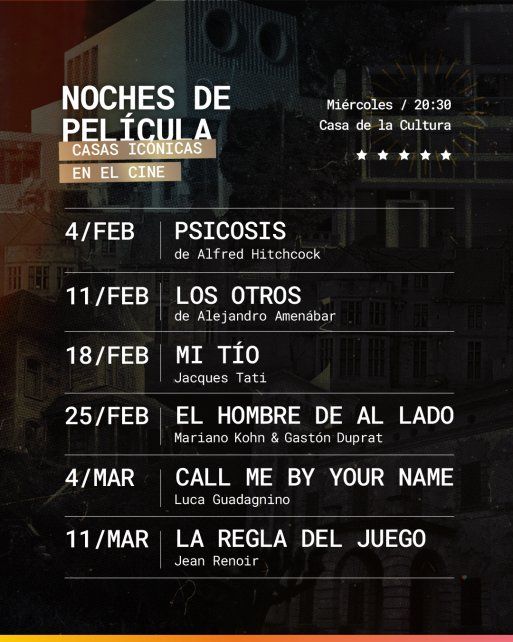 La Casa de la Cultura, ubicada en Bulevar Gálvez 1274, abre sus puertas para dar inicio a un ciclo de cine al aire libre coorganizado con Cine Club Santa Fe. Todos los miércoles de febrero y marzo, los jardines de la Casa serán escenario de una selección de películas donde casas icónicas ocupan un rol protagónico dentro de los relatos.