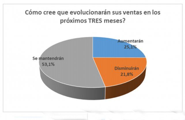 En materia de expectativas a corto plazo (ventas en los próximos tres meses), más de la mitad de los comerciantes (53,1%) respondió que el flujo comercial se mantendrá en los mismos niveles de venta; el 21,8% cree que disminuirán y un 25,1% supone que se incrementarán.