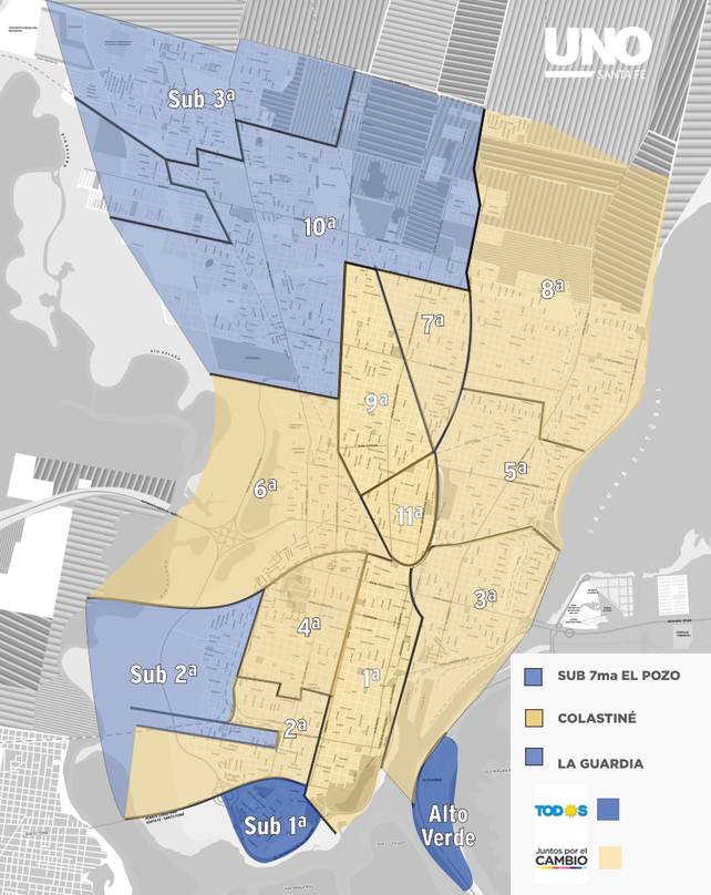 UNO Santa Fe diagramó un mapa de la ciudad que representa como varió el voto del santafesino barrio por barrio. Independientemente de qué precandidato a concejal fue el más votado, se puede afirmar que Juntos por el Cambio triunfó con sus representantes en 11 de las 18 seccionales. En tanto, el Frente de Todos se quedó con los siete distritos electorales restantes.