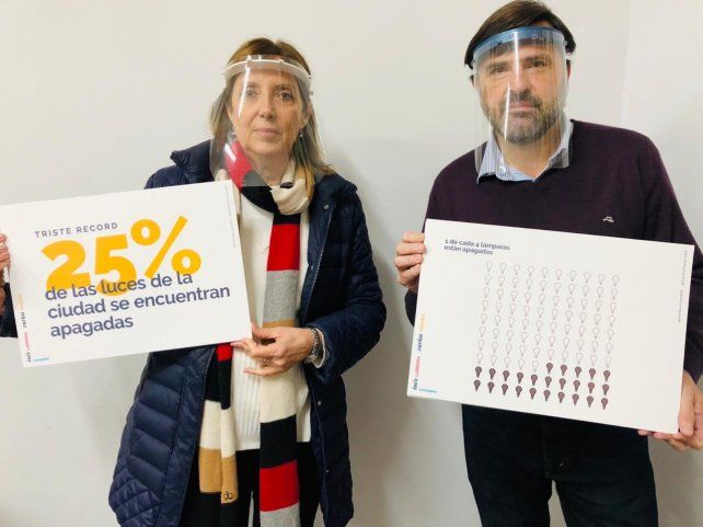 Los concejales de la UCR en Juntos por el Cambio, Inés Larriera y Carlos Pereira, realizaron este miércoles una conferencia de prensa para reclamar al Ejecutivo un plan de inversión y el cronograma de obras previsto por el Municipio para atender una situación cada vez más preocupante: la falta de iluminación en las calles de la capital provincial, donde hay un total de 9 mil luminarias apagadas, lo que significa que 1 de cada 4 luces de la ciudad se encuentra apagada.
