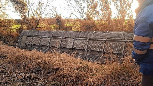 Si bien no hay información oficial, en el lugar se puede ver que hay un total de 10 vagones, cargados de cereal, que cayeron de las plataformas, ya que el tren se salió de la vía, y quedaron desparramados en el lugar.