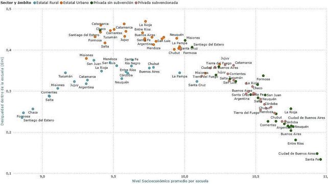 "Un actor fundamental es la proporción de escuelas privadas. Las provincias que presentan mayor nivel de segregación escolar son aquellas que tienen mayor proporción de escuelas privadas también", apuntó.