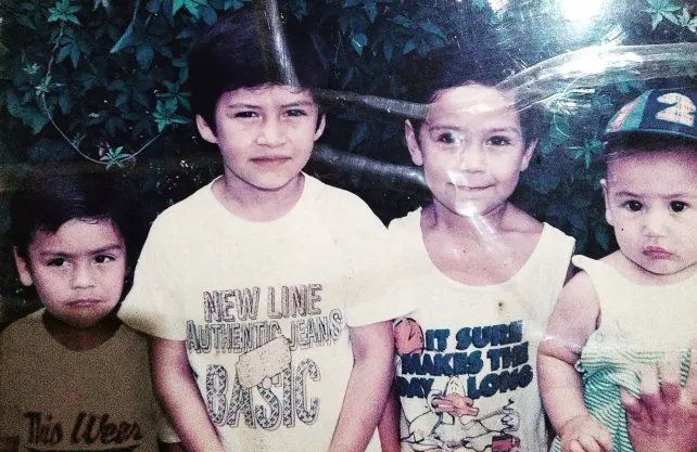 En la primera se puede ver el rostro de un bebé. Es mi hermano que hoy tiene 18 años, en ese entonces tenía un año y dos meses de vida. Quien lo tiene en sus brazos y no se ve soy yo.