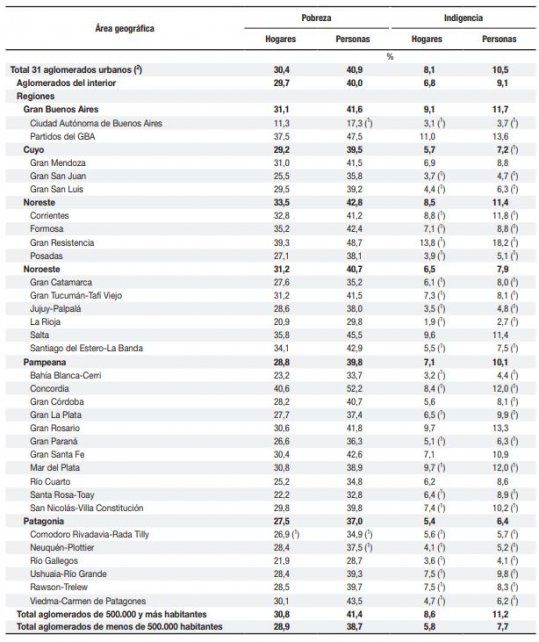 El Instituto Nacional de Estadística y Censos (Indec) dio a conocer las cifras de la pobreza en la Argentina. El promedio nacional de ese indicador alcanzó al 40,9% de las personas, mientras que el 10,5% de los argentinos es indigente al finalizar el primer semestre de 2020.