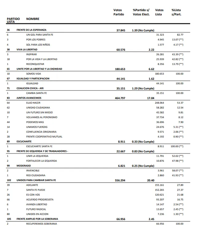 Este miércoles terminó el escrutinio definitivo, el único que tiene validez jurídica, de las elecciones primarias, simultáneas y obligatorias (Paso). Los departamentos Rosario y San Lorenzo eran los últimos que quedaban pendientes. El Tribunal Electoral de Santa Fe confirmó que habrá sólo cuatro listas de candidatos a la gobernación y seis en la categoría diputados.