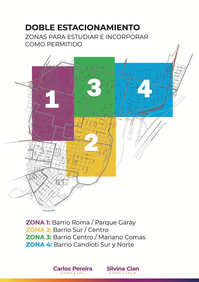 La iniciativa es de los concejales de Unidos, Carlos Pereira y Silvina Cian. Proponen agregar hasta 1.800 dársenas en calles que permitan estacionamiento en doble mano.
