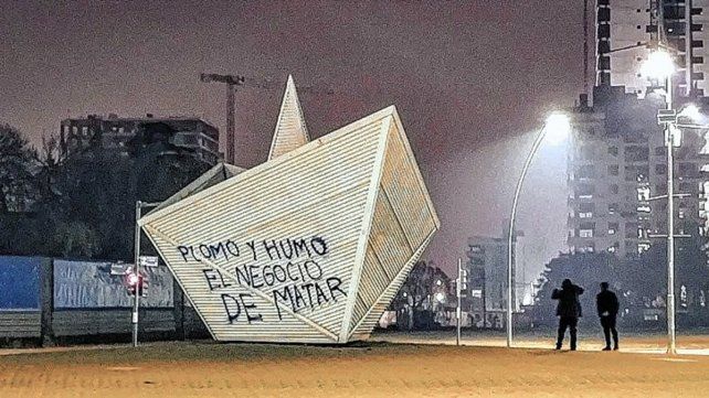 “Humo y plomo, el negocio de matar”, “basta de quemas” y “El negocio de matar”, fueron las leyendas que quedaron grabadas sobre los icónicos edificios del microcentro de Rosario.