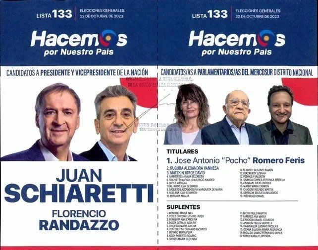 Respecto de Hacemos por Nuestro País (HNP), Juan Schiaretti y Florencio Randazzo se presentan como candidatos a presidente y vice y José Antonio Romero Feris al Parlasur distrito nacional. Esteban Paulón, Rita García y Nicolás Lungo lideran la lista de diputados nacionales y Gustavo Leone va para Parlasur distrito Santa Fe.