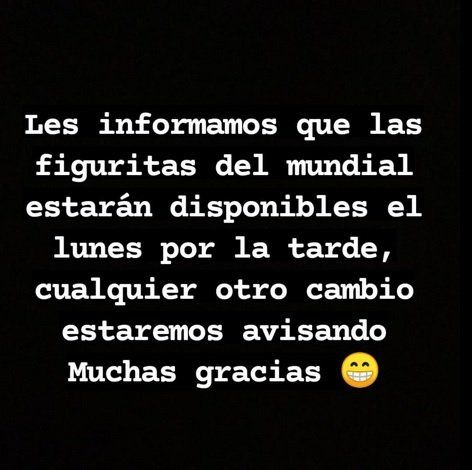 Finalmente en las últimas horas desde algunos de los comercios manifestaron que recién en la ciudad las figuritas van a estar llegando el lunes a la tarde a la ciudad, por lo que se deberé esperar unas horas más para tener mayor demanda de figuritas.