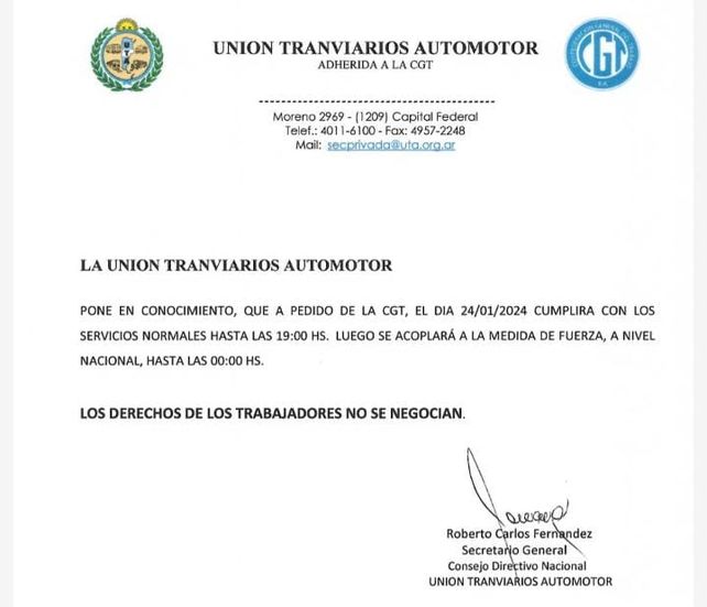 Desde UTA Santa Fe informaron que el servicio será normal hasta las 19 horas. Luego, se acompañará el paro hasta la medianoche. Esta disposición se funda en garantizar el traslado de los manifestantes a los principales centros.