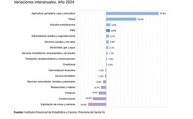 El Producto Bruto Geográfico (PBG) de Santa Fe, el indicador que mide el valor de los bienes y servicios producidos en la provincia, registró un aumento real del 4,1% en 2024 respecto al año anterior.