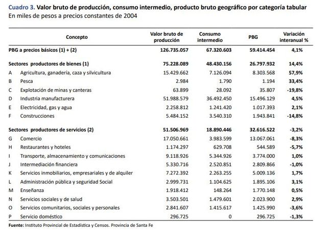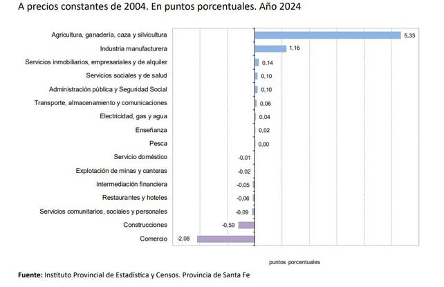 La clave para entender el desempeño de Santa Fe reside en el sector productor de bienes, que incluye la agricultura y la industria, y que experimentó una notable suba real del 14,4%.