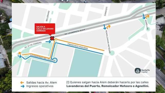 El ingreso a la rotonda desde Av. Alem se mantendrá operativo, pero quienes antes salían hacia Alem desde este punto ahora deberán hacerlo mediante las salidas de calles Lavanderas del Puerto/Tucumán o Agnelini/Sarmiento.