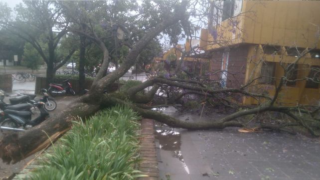 Las fuertes ráfagas de viento no tuvieron piedad con decenas de árboles que fueron talados o arrancados de raíz. Hubo daños importantes en algunas viviendas, con voladuras de techos y severos daños sobre aberturas