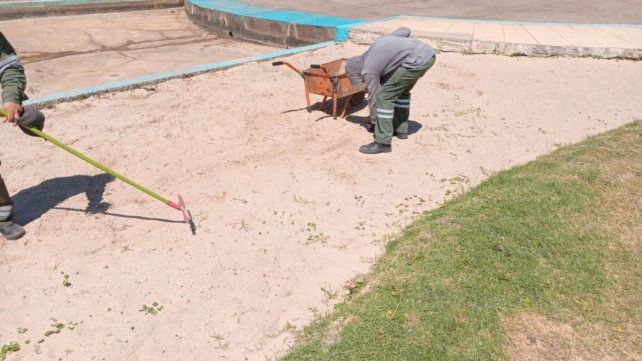 En el Parque del Sur, sumado a las tareas de mantenimiento de los piletones, se trabaja en el relleno del área de arena en ambos extremos del lago, mientras que se reacondiciona el sector destinado a los food trucks, que volverán a instalarse próximamente. En paralelo, se realiza corte de césped y tareas de mantenimiento de las luminarias existentes.