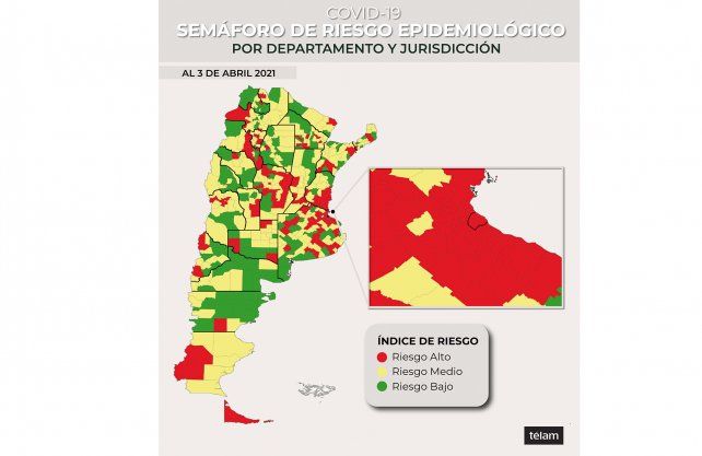 Los departamentos santafesinos que tienen comprometido en mayor medida su sistema sanitario, siendo calificados de alto riesgo epidemiológico son: Belgrano, Caseros, Castellanos, Rosario y San Lorenzo.