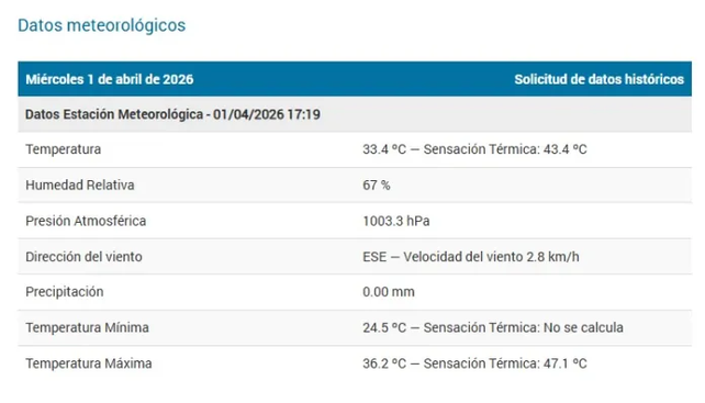Así lo informó el Centro de Informaciones Meteorológicas (CIM) de la Facultad de Ingeniería y Ciencias Hídricas. Pasadas las 17 de este miércoles, la sensación térmica en la ciudad de Santa Fe era de 47.1°C, con una temperatura de 36.2 °C.