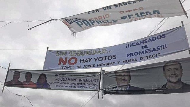 Los vecinos de los barrios Jorge Newbery y Nueva Detroit, de la comuna de Sauce Viejo, tuvieron la idea de colgar pasacalles pidiendo seguridad para visibilizar el problema que azota la zona y toda la región. Distribuyeron los carteles en distintos puntos de la localidad al reclamo de "Sin seguridad no hay votos". Pero no duraron ni 24 horas.