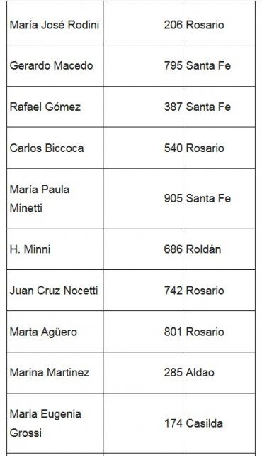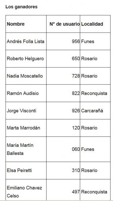 En esta oportunidad los usuarios ganadores son de las localidades de: Rosario, Santa Fe, San Justo, Esperanza, Andino, Arroyo Seco, Helvecia, Santo Tomé, Álvarez, El Trébol, María Juana, Cañada de Gómez, Casilda, Suardi, Andino, San José del Rincón, Puerto San Martín y Laguna Paiva.