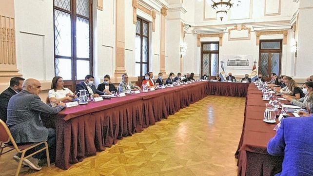 En pleno clima de crisis institucional en Seguridad toda la cúpula santafesina mantiene un encuentro en Casa de Gobierno con presencia del gobernador Omar Perotti, intendentes de Santa Fe y Rosario, dirigentes de la oposición y funcionarios de la administración provincial.