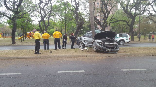 En la mañana de este viernes, cerca de la 10, en avenida Almirante Brown, a la altura del Parque de la Locomotora, un auto que transitaba en sentido norte-sur, terminó sobre el cantero central e incrustado en una de las palmeras.