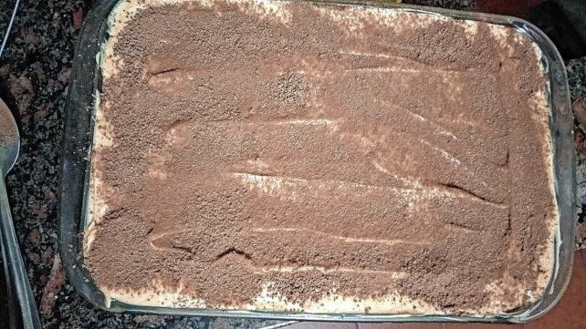 Usar una fuente grande de 35×25 cm. Mojar una a una las vainillas en el café (cuidando de que no queden con exceso de líquido y se rompan) e ir poniéndolas en la base de la fuente, hasta cubrirla completamente. Agregar la mitad de la mezcla. Luego, agregar otra capa de vainillas mojadas en café. Poner la otra mitad de la mezcla. Espolvorear completamente con chocolate en polvo, pasando este por un colador. Poner en el freezer por dos horas para que obtenga consistencia. Luego bajar a la heladera y mantenerlo ahí.