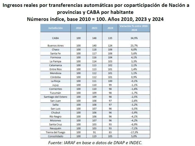 Un informe elaborado por el Instituto Argentino de Análisis Fiscal (Iaraf), analiza en profundidad la distribución de los recursos federales en la Argentina y pone el foco en la capacidad de gasto por habitante derivada de las transferencias automáticas que la Nación envía a las provincias.