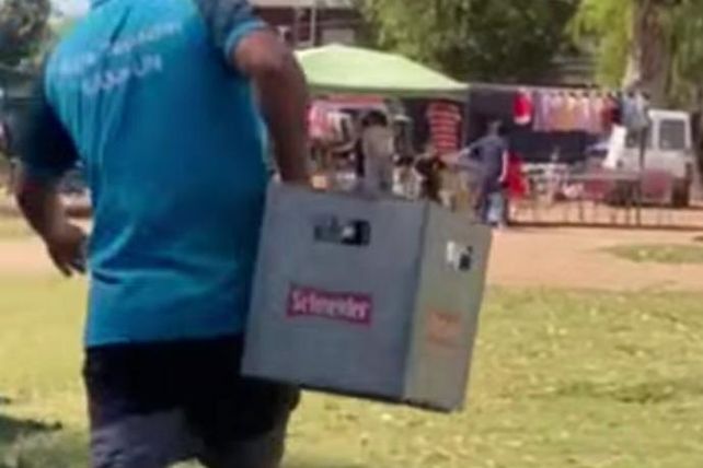 Mientras se intentaba auxiliar al chofer y comenzar con la recuperación de la mercadería, un grupo de personas aprovechó la situación para llevarse bebidas, principalmente cajones y algunos barriles de cerveza que habían quedado sobre la calle.