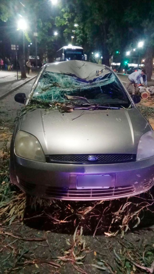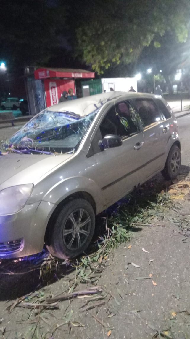 El incidente ocurrió alrededor de las 18.40, en una zona de alto tránsito peatonal y vehicular. Según testigos, la rama cayó de manera repentina sobre el auto que circulaba lentamente, aplastando buena parte del techo y el parabrisas. En su interior, viajaban dos adultos y un bebé.