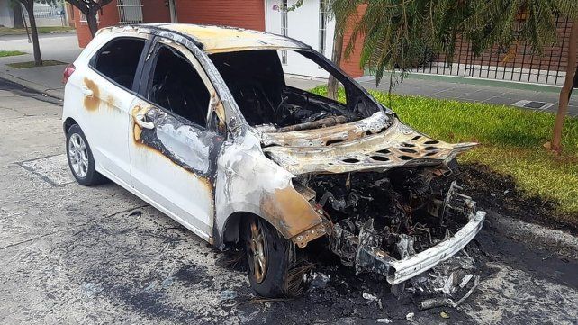 Por último, a las 5 prendieron fuego un Ford Ka en La Paz al 3900, en barrio Barranquitas. Allí la hija del dueño manifestó que gracias a a las cámaras de los vecinos se puede ver a un hombre que arroja algo y espera unos minutos mientras el auto se prende fuego para retirarse. Los daños sufridos son casi totales.