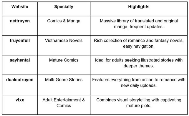 Below, we’ll explore the best free online reading sites that provide high-quality and diverse reading materials, including popular platforms like nettruyen, truyenfull, sayhentai, dualeotruyen, and vlxx.