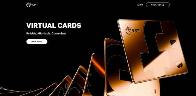 EPN se centra en rapidez y conveniencia de trabajo con tarjetas virtuales, incluyendo Google Ads. Emite tarjetas Visa y Mastercard de bancos estadounidenses con 3D Secure. Usa 20 BINs confiables, reduciendo rechazos en tráfico internacional. Comisiones de recarga desde 2,5%.
