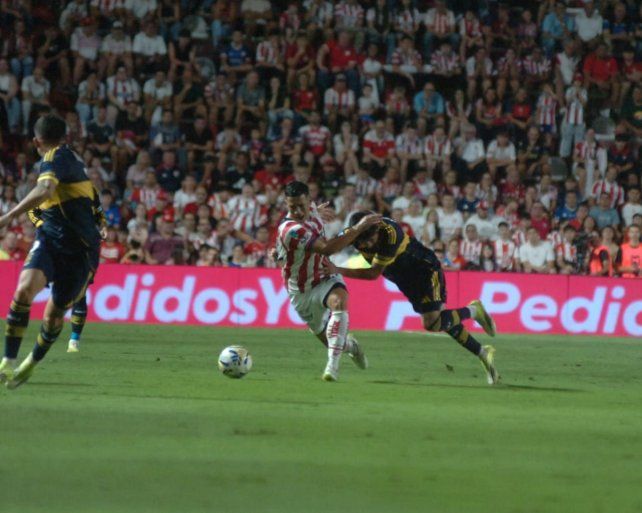 Ascacíbar habilitó a Merentiel, quien quedó mano a mano con Mansilla, definió y antes que la pelota pase la línea de gol apareció Mateo Del Blanco para despejar el peligro.