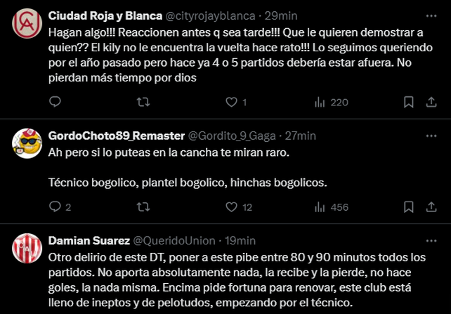 En las redes, los hinchas de Unión estallaron por la falta de regularidad en el Apertura, donde está último. Para la mayoría, es ciclo cumplido para Kily