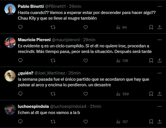 Las opiniones son para todos los gustos, pero en su mayoría, de enojo y malestar con las decisiones deportivas, justo en la previa de la Copa Sudamericana que despierta tantas ilusiones.
