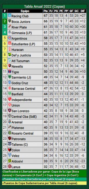 De esta manera, se producirá un solo corrimiento en la tabla acumulada que lleva a la Libertadores y Sudamericana 2023, por el campeón del Torneo de la LPF. Así las cosas, tomando como referencia el puesto 11, que ocupa Tigre con 50 puntos, Unión arrancará la jornada 22 a siete puntos de ese lugar, con una diferencia de gol de -6 contra los +10 del Matador, y con un partido pendiente de la fecha 11 ante Talleres en Códoba.